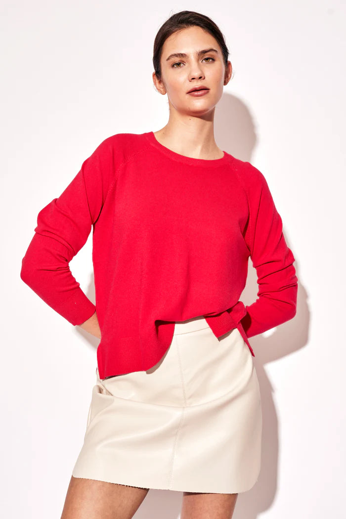 Add a pop of color to your wardrobe with the Lorraine sweater from Deluc. The classic crewneck is the perfect sweater to transition into warmer weather or use as a layering piece under your favorite jacket or blazer in cooler temperatures. Featuers crew neckline, long sleeves, ribbed cuffs and hemline with side slit.